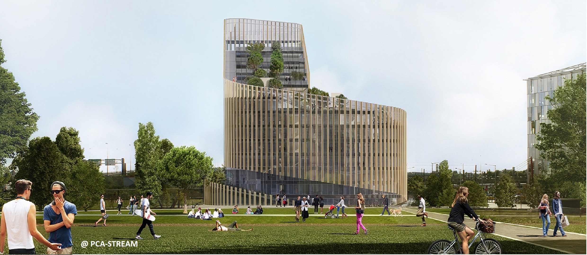 Le bâtiment accueillera le siège de la Caisse d’Epargne Nord ainsi que de multiples services pour les utilisateurs et des espaces partagés : Place de village, terrasses potagères, commerces, hôtel, crèches, restaurants, coworking, incubateur… Ce programme développe un total de 33 000m² dont 24 000 m² de bureaux. La performance environnementale a été au cœur de la conception et sera récompensée par le label BREEAM Excellent. La toiture accueillera 190 m² de panneau solaire photovoltaïque.